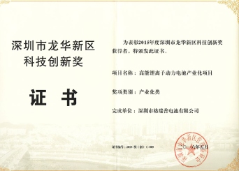 深圳龍華科技創(chuàng)新獎(jiǎng)(2016)